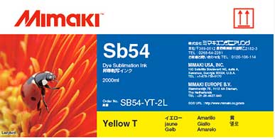 Mimaki Sb54 Yellow ink 2000cc (2L) Pouch (loose). Manufacturer Part Number: Sb54 2000cc Y (loose). Dye sublimation ink for large format inkjet prin...