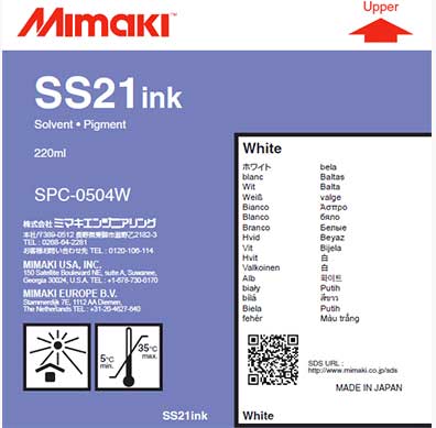 Mimaki SS21 Solvent Ink 220 ml White. Manufacturer Part Number: SPC-0504W-2Solvent ink for large format inkjet printer / plotter.Compatible Mimaki ...