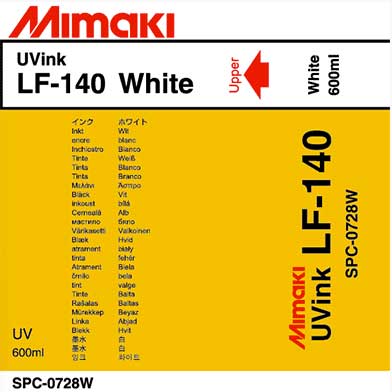 Mimaki LF-140 ink White 600ml. Manufacturer Part Number: SPC-0278W.UV curable ink for large format inkjet printer / plotter.