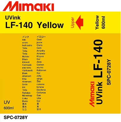 Mimaki LF-140 Yellow Flexible Ink 600ml. Manufacturer Part Number: SPC-0728Y600cc.UV curable ink for large format inkjet printer / plotter.Compati...