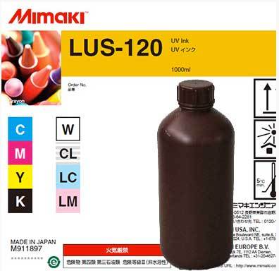 Mimaki LUS-120 UV curable ink 1L bottle White. Manufacturer Part Number: LUS12-W-BA.UV curable ink for large format inkjet printer / plotter.Compat...