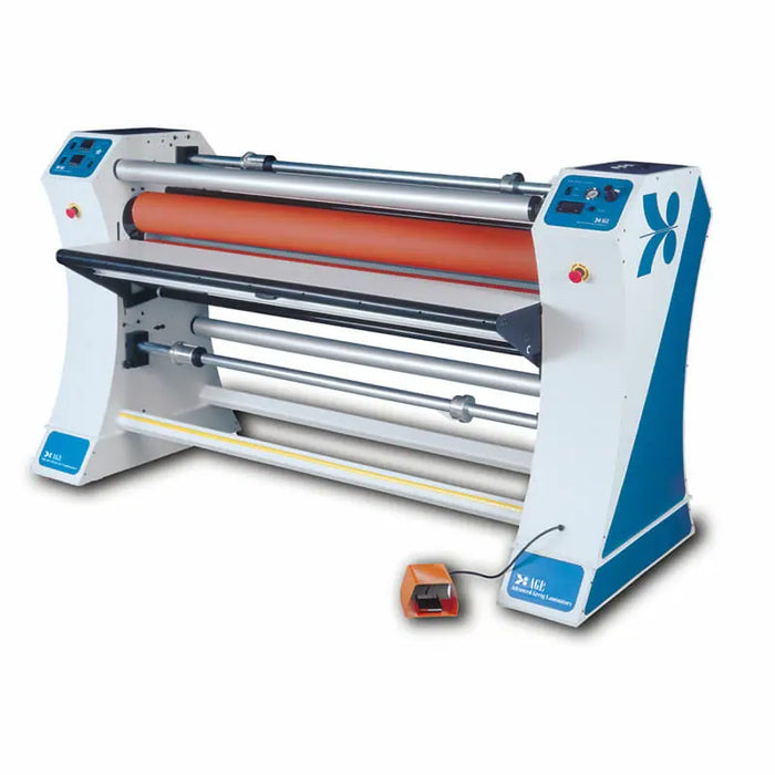 AGL Encore Series are capable of mounting and laminating up to 62” wide with thermal, pressure sensitive and heat assist laminates. These units feature a pneumatically actuated nip roll assembly as well as a pneumatically actuated pull roll assembly for process repeatability and safety. Capable of running up to 20 ft per minute standard (30 fpm option available).