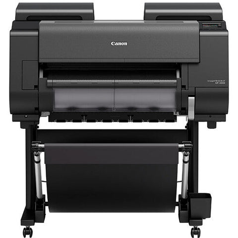 The GP Series are the world's first large format printer with aqueous pigment Fluorescent Pink Ink*. The 24" GP-2000 is a 10-color (MBK, BK, GY, C, M, Y, R, O, G, V) plus Fluorescent Pink Ink large format printer. Equipped with Canon's unique Radiant Infusion which layers the newly developed Fluorescent Pink Ink with other inks on the paper surface during printing creating bright and soft color reproduction. With the new Red, Orange, Green, Violet, and Fluorescent Pink Inks, the imagePROGRAF GP-2000 printer has the largest color gamut of any imagePROGRAF printer to date. Other features include built in color calibration, Intelligent Media Handling, and USB Thumb Drive printing.