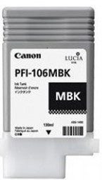 Canon 130mL Matte Black Ink Tank Cartridge - PFI-106MBK. Compatible with Canon printers: iPF6300, iPF6350, iPF6400, iPF6450. (Canon Part: 6620B001AA).
